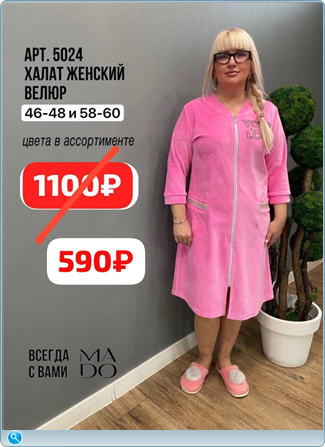 СообщениеДобавлено: Пт Мар 20, 2026 1:14    Re: Re: 40/4-MADO(Омск) ВЕЛЮРОВЫЕ ХАЛАТЫ 350 и 590р. ЛИКВИДАЦ... Ответить с цитатой