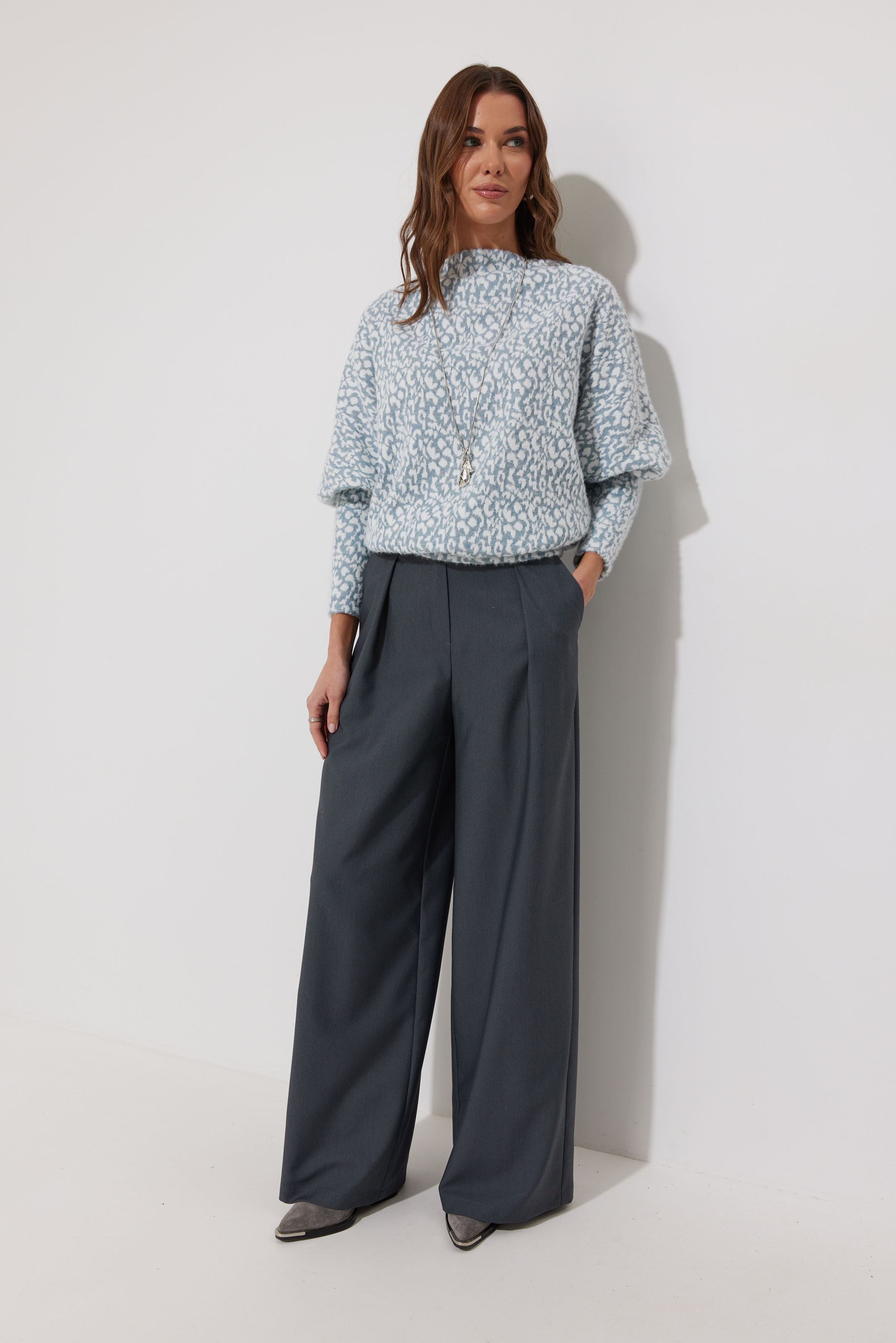 \n Брюки 4272 (серый) \n коментарий Брюки из поливискозной ткани, прямого, расширенного силуэта. На передних половинах брюк по одной складке, выходящих из-под пояса. По переду застежка на молнию по типу гульфик.