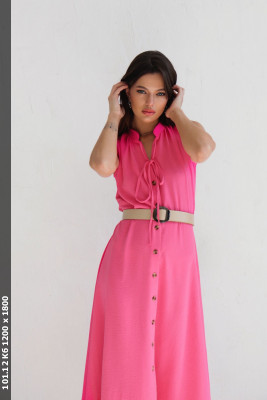 \n \\\"9592 Платье, как из к/ф \\\"\\\"Красотка\\\"\\\", ярко-розовое ОПИСАНИЕ\\\" \n коментарий Платье без рукавов с застежкой на пуговицы и отрезной летящей юбкой. Воротник-стойка дополнен тонкими завязками, по