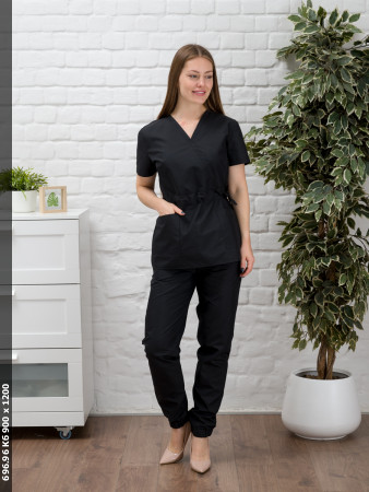 \n 240618-4973 Брюки свободного кроя \n коментарий Брюки свободного кроя. Спереди карманы в подрезных бочках. Сзади фигурные накладные карманы. Пояс эластичный, с кулисой, в которую вставлены завязки. По низу брюк