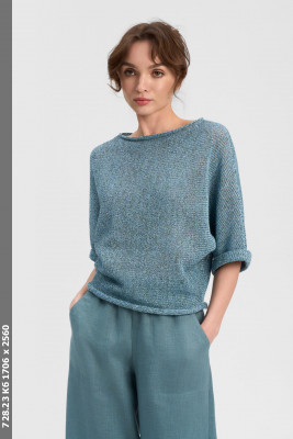 \n Свитшот 3300 \n коментарий Свитшот прямого свободного силуэта из сочетания двух материалов и фактур. Хлопковый трикотаж с элтаном и вискозный атл. Декорирован оборками в облти плеча, низ изделия оформлен поясо